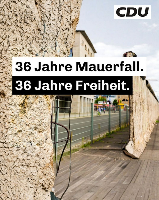 🖤❤️💛Vor 36 Jahren fiel die Berliner Mauer, die unser Land 28 Jahre lang geteilt und Millionen Menschen im Osten Deutschlands eingesperrt hat. Die mutigen Bürger der DDR hatten den Mauerfall mit ihren Massenprotesten gegen das sozialistische SED-Regime möglich gemacht🖤❤️💛 https://t.co/zJDf8VGbzb