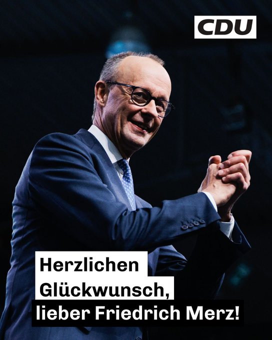 Ausgezeichnet! @_FriedrichMerz wurde mit 91,7% auf dem CDU-Bundesparteitag als Vorsitzender der @CDU wiedergewählt. Herzlichen Glückwunsch! #CDU #cdupt26 https://t.co/qVI9B5UnT1